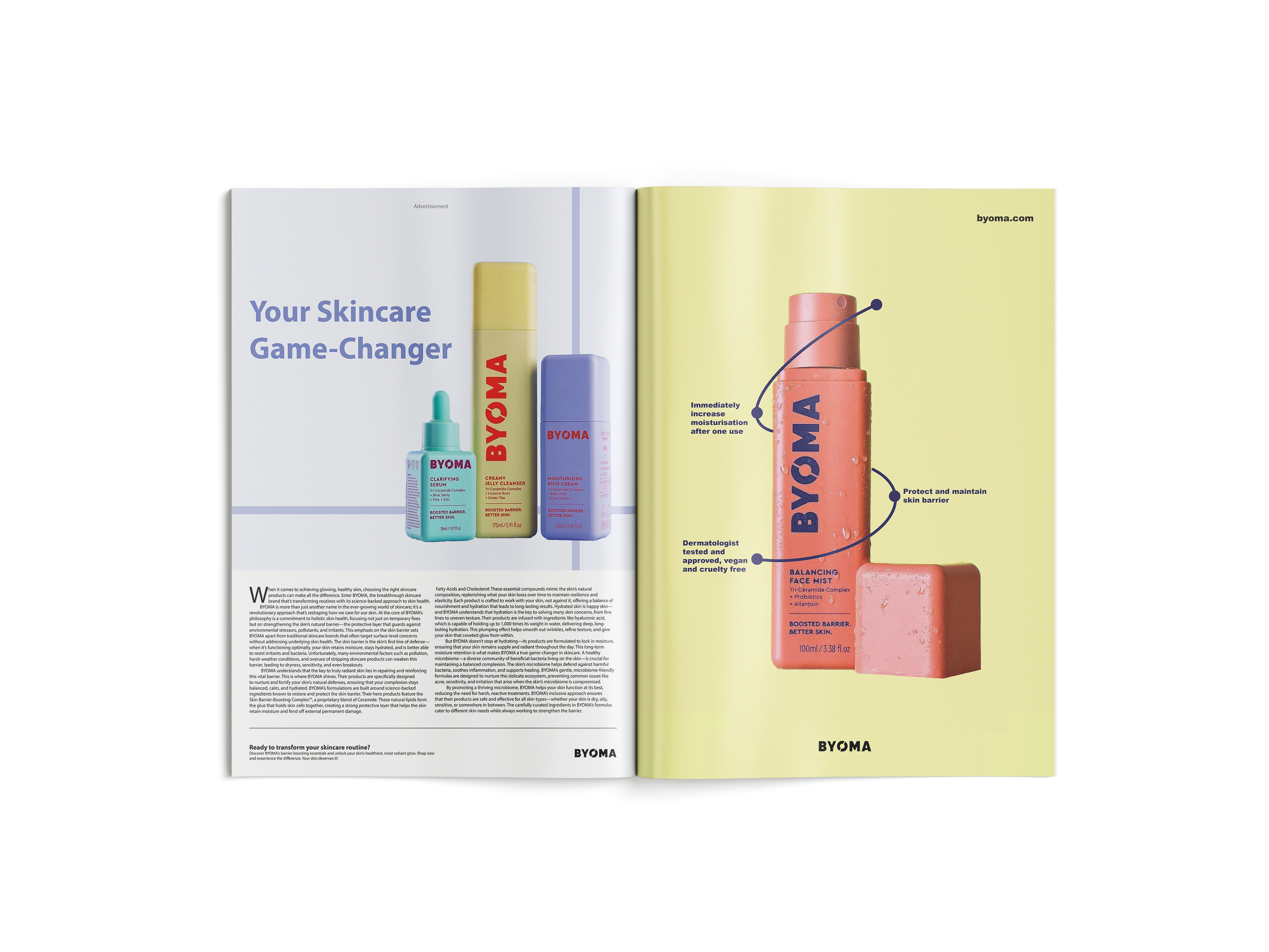 The BYOMA advertisement campaign was a personal project inspired by BYOMA product photography. This project aimed to show how photography can be used in advertisements.