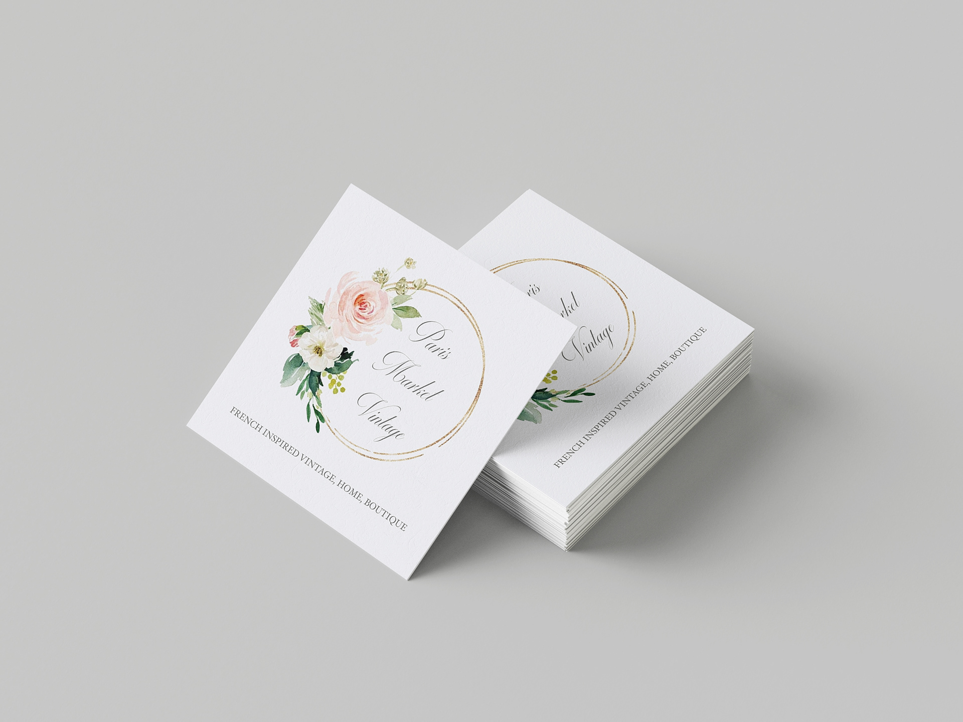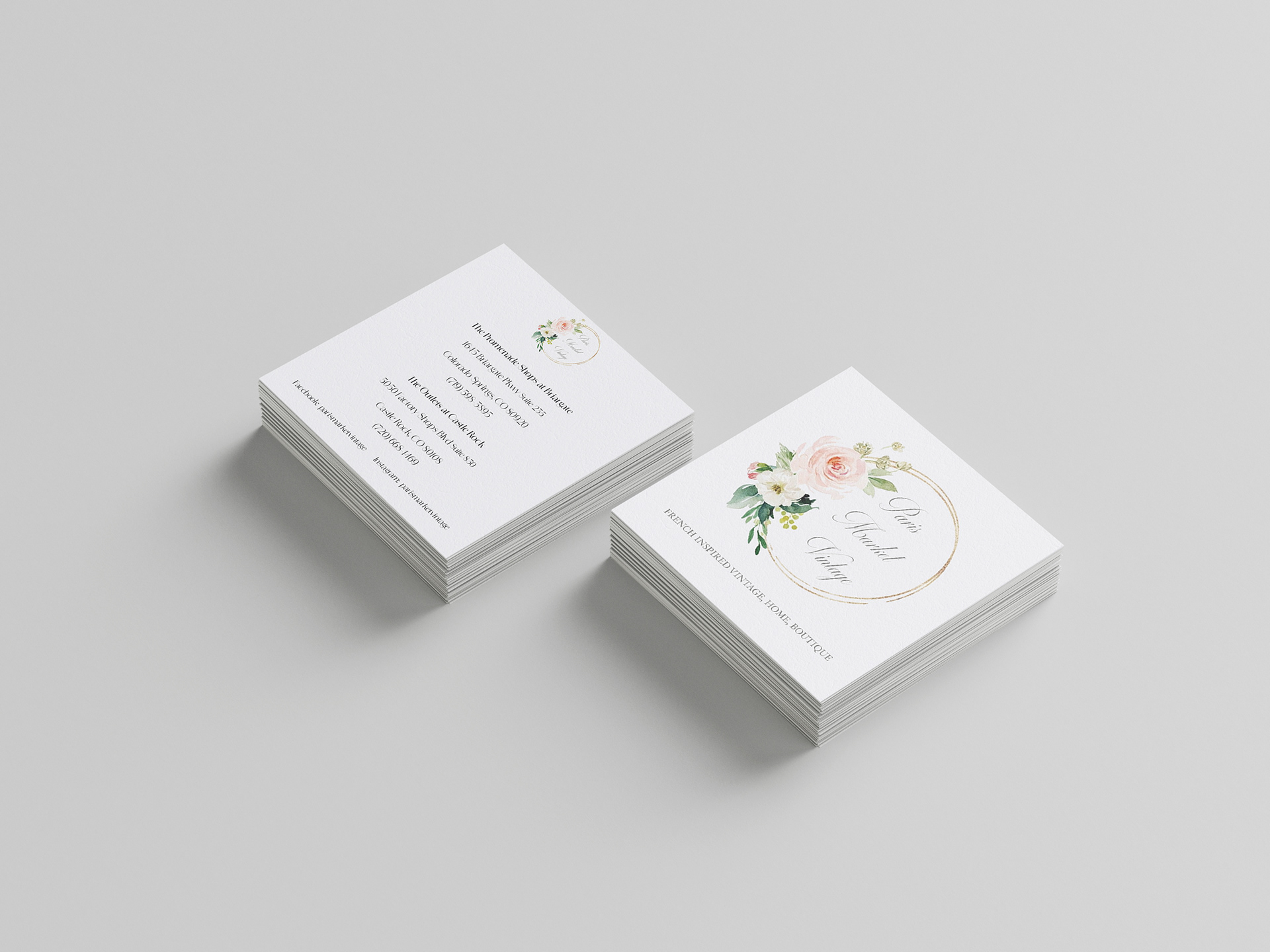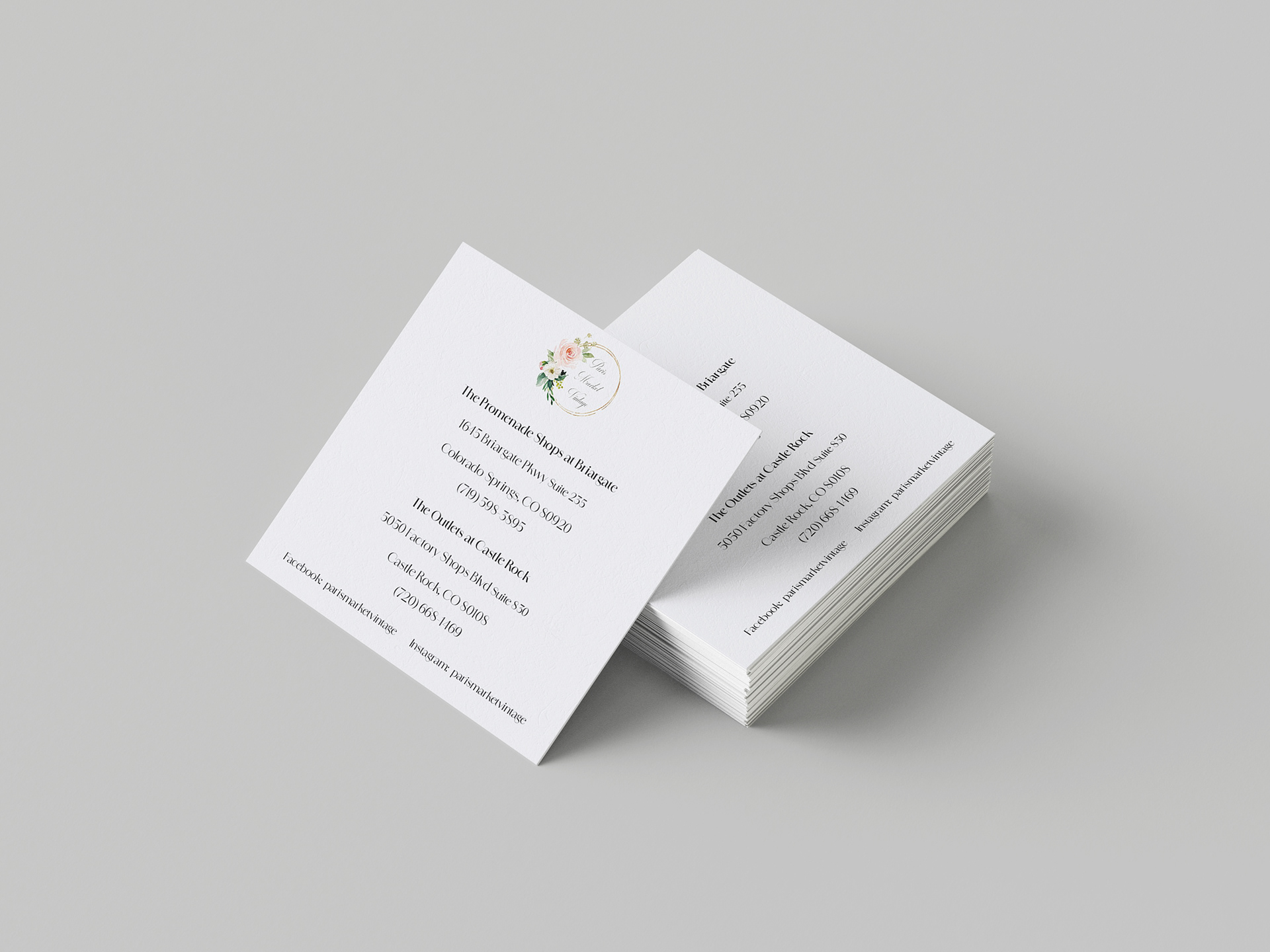 Business cards for the local boutique where I work. They wanted both store locations to be present on the card, along with their Instagram and Facebook handles.